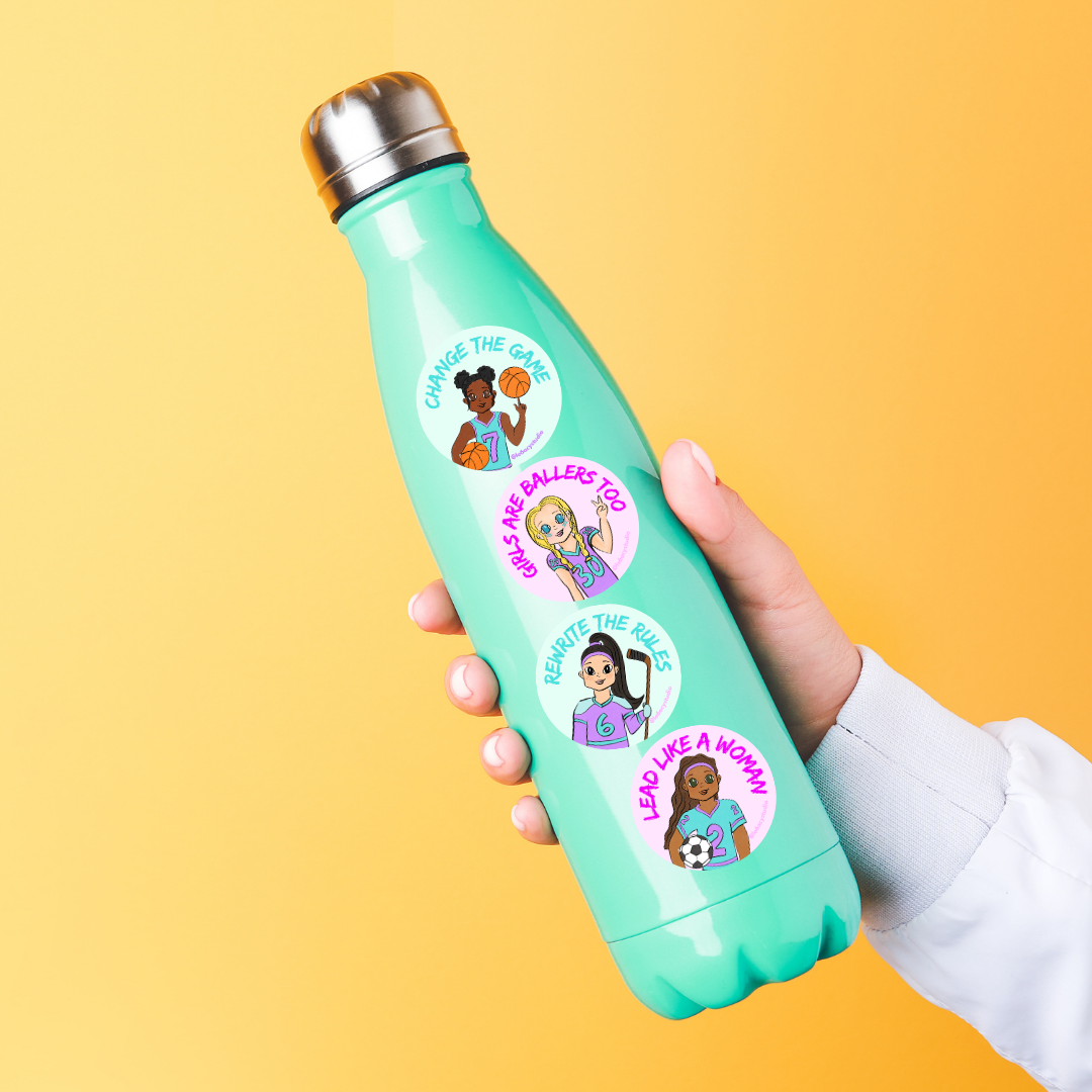 - Change the game with a bold sticker featuring a hand-drawn illustration of a female basketball player.